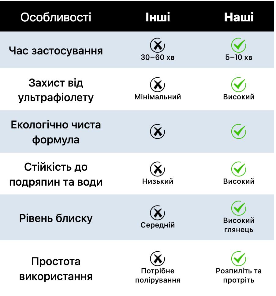 Він створює глибокий блиск і надійний захист, який зберігається місяцями — швидко, легко та без зайвого клопоту.